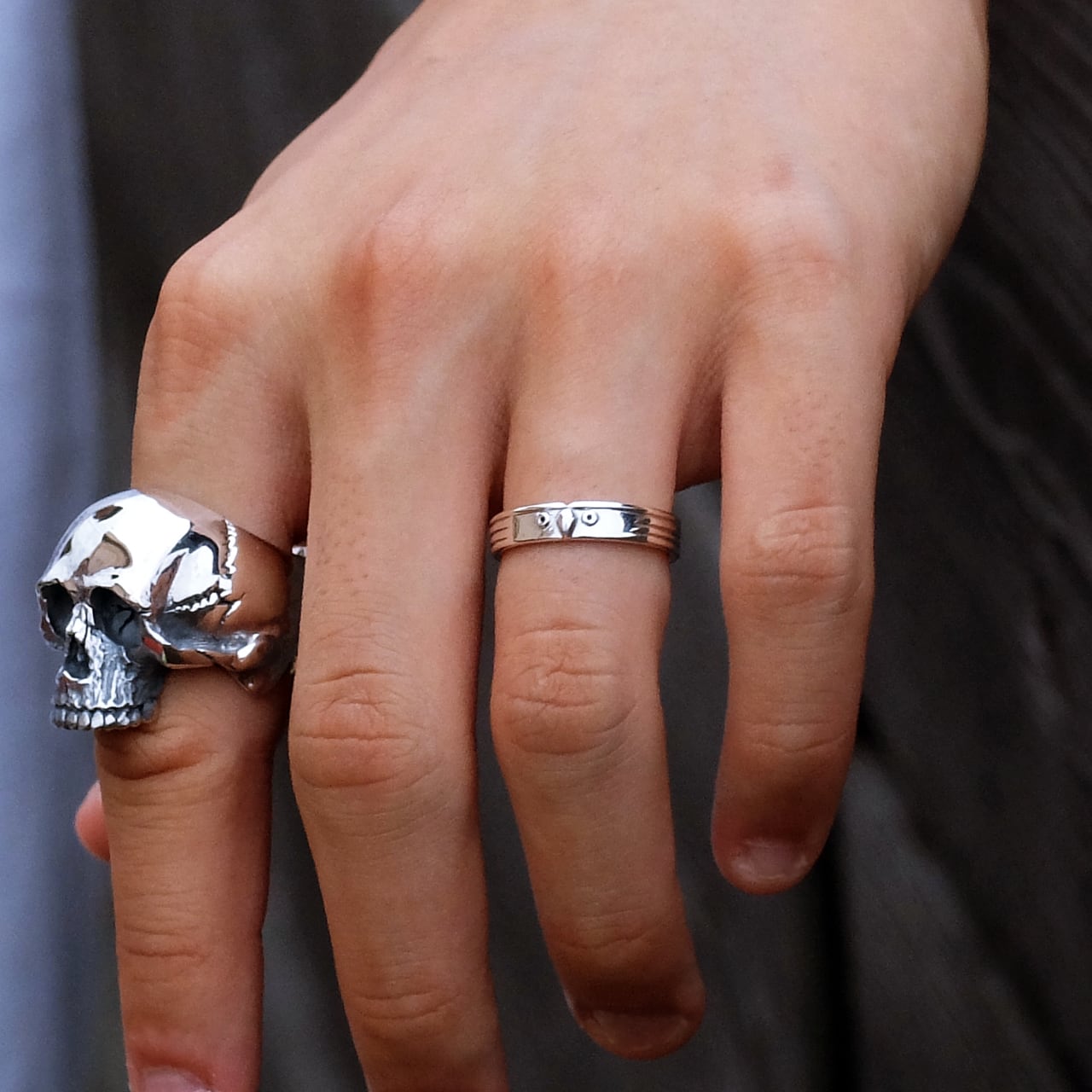 フクロウの顔をモチーフにしたスリムタイプのシルバーリング。