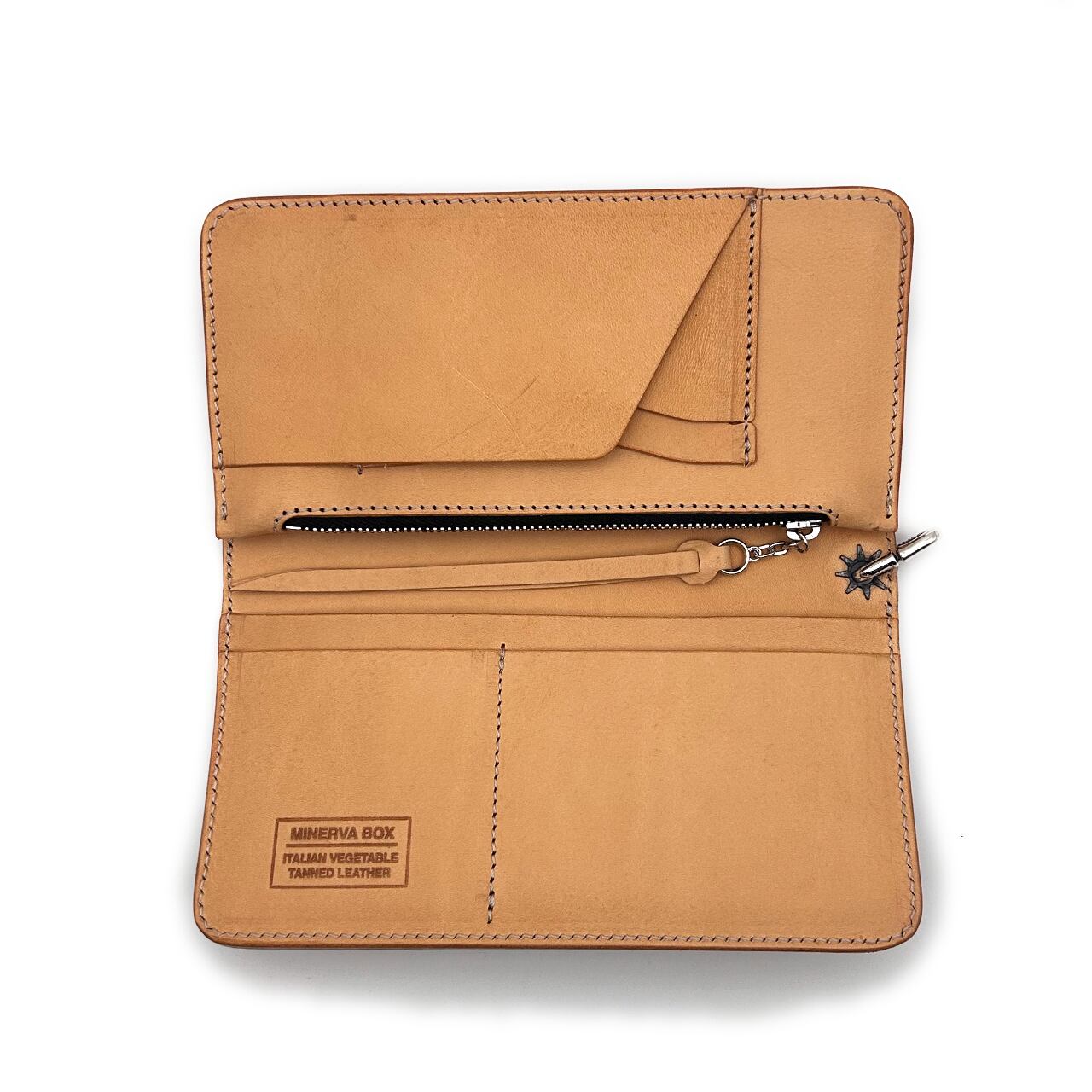 内革には、イタリア産バケッタレザー(ミネルバBOX)を採用し、しっとりと手になじむ質感と経年変化をお楽しみいただけます。
